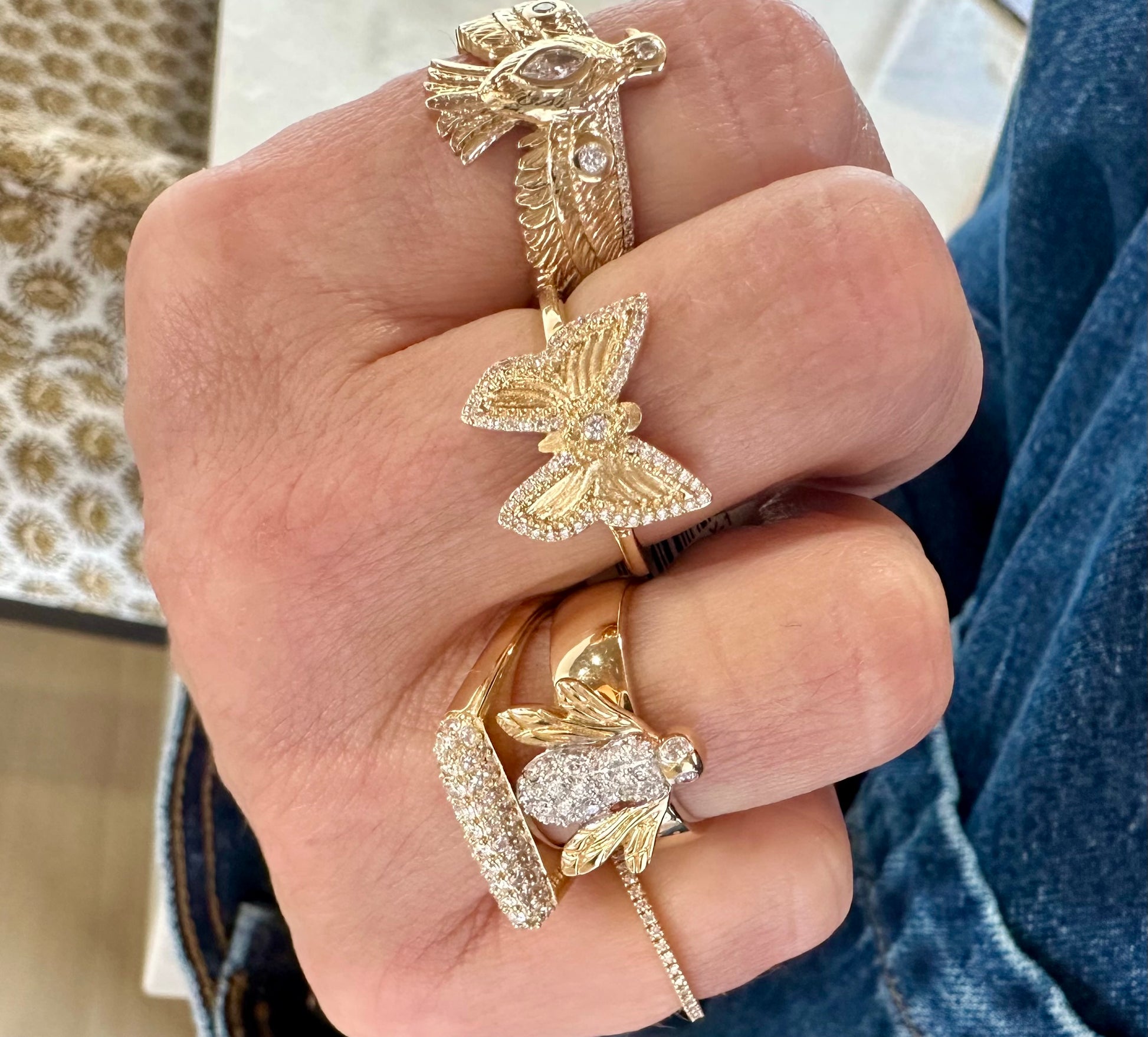 We use only the finest materials, including 14k gold, sterling silver, platinum, and ethically sourced diamonds and gemstones.