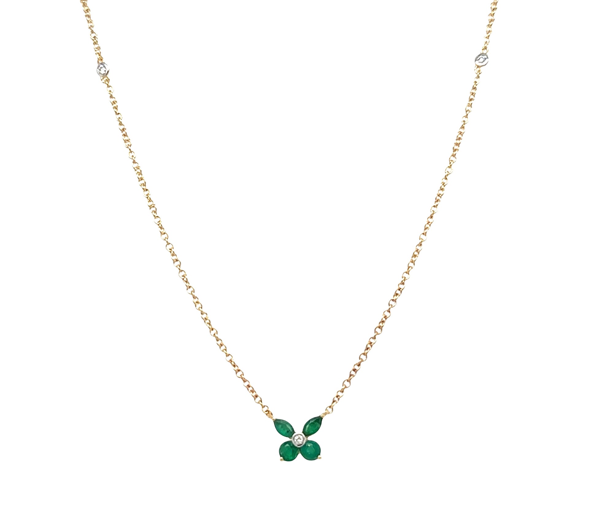 Fresh, fun, and full of color — this 14k yellow gold necklace features a dainty butterfly design made with emerald or ruby and a sparkling diamond center. The subtle diamond accents along the chain add just the right touch of shimmer. Perfect for layering or wearing solo, it’s a cheerful pop of color that brings a little joy to your everyday look.