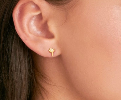 For our ocean lovers. Our diamond palm tree studs are made for the sand. Made in 14k yellow gold with 0.02c natural diamonds.