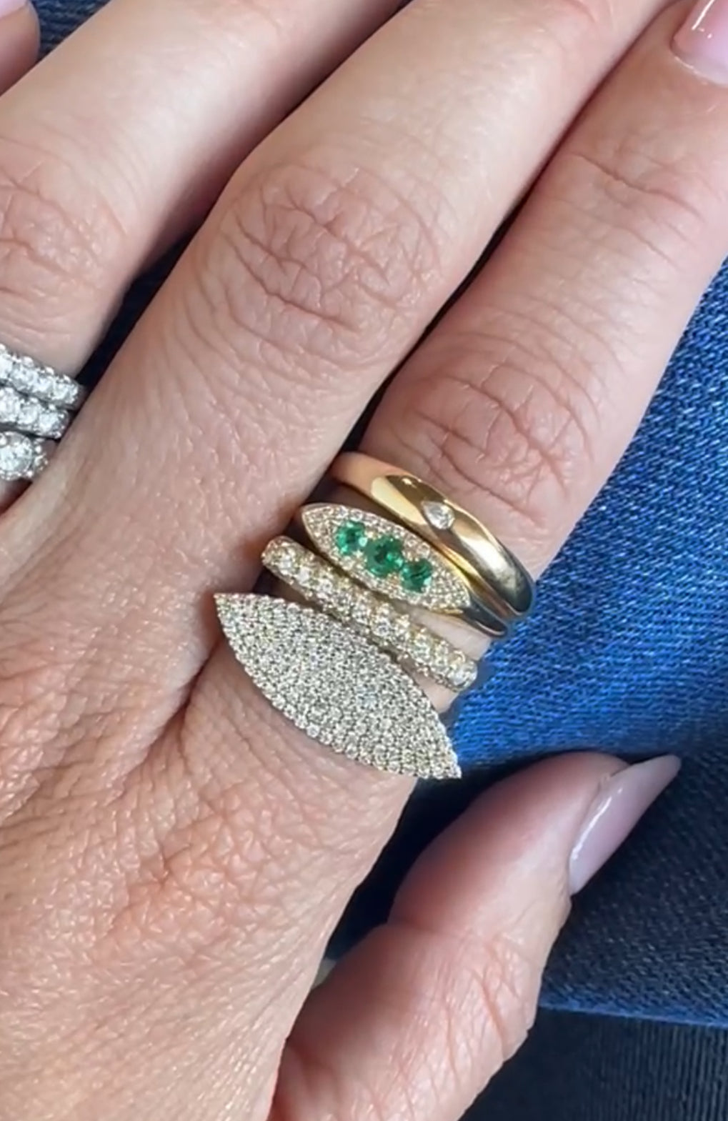 Wipe jewelry with a soft, damp cloth after wearing, and avoid paper towels. Let pieces dry before storing. Use JBJ foaming cleaner for diamonds, most metals, and delicate stones, or opt for professional cleaning for extra care.