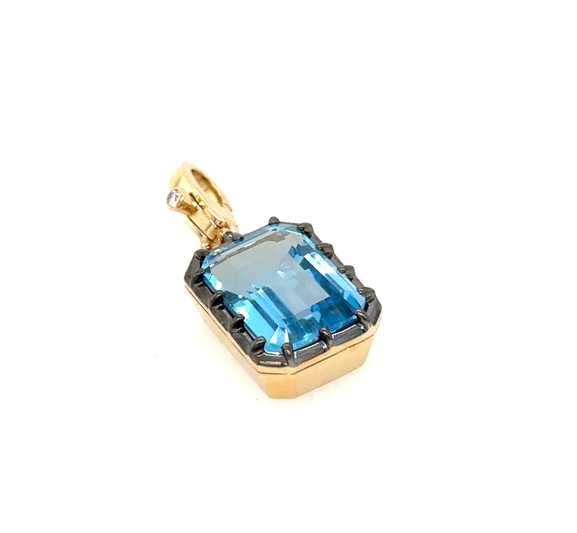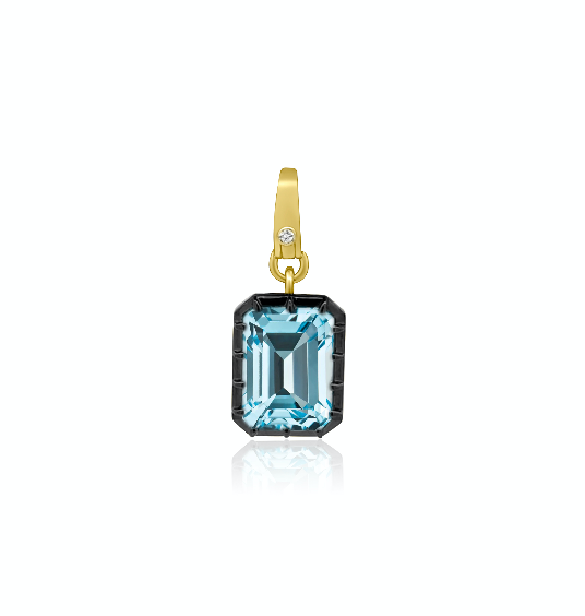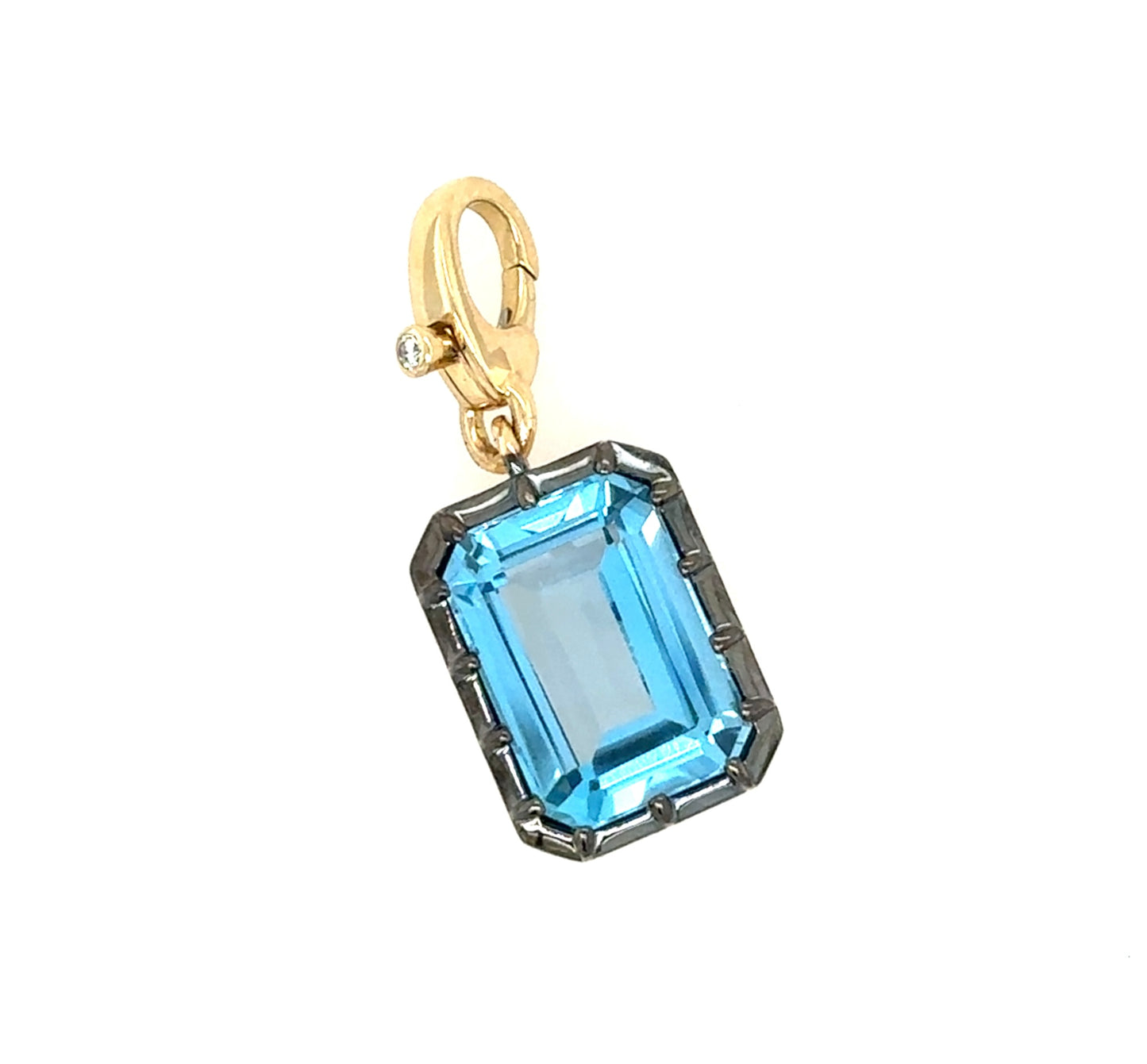 This elegant Emerald Shape Rhodium Framed Enhancer Pendant is designed in 14k yellow gold. A beautiful topaz stone framed in rhodium, creating a stunning pendant that is perfect for both formal and casual occasions. Dress it up with a little black dress or elevate your everyday look with jeans and a t-shirt. Available in white topaz & Sky Blue topaz.
