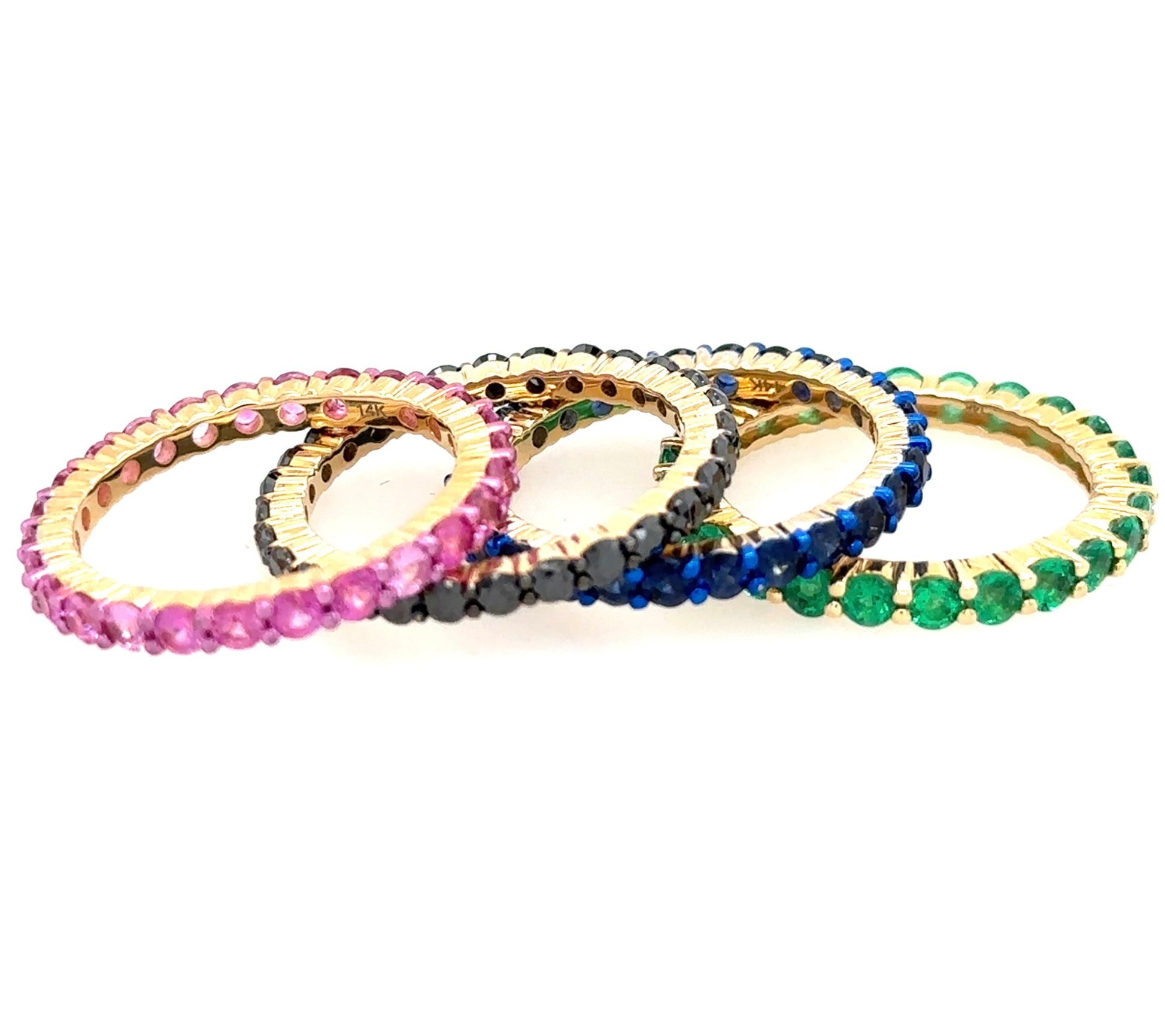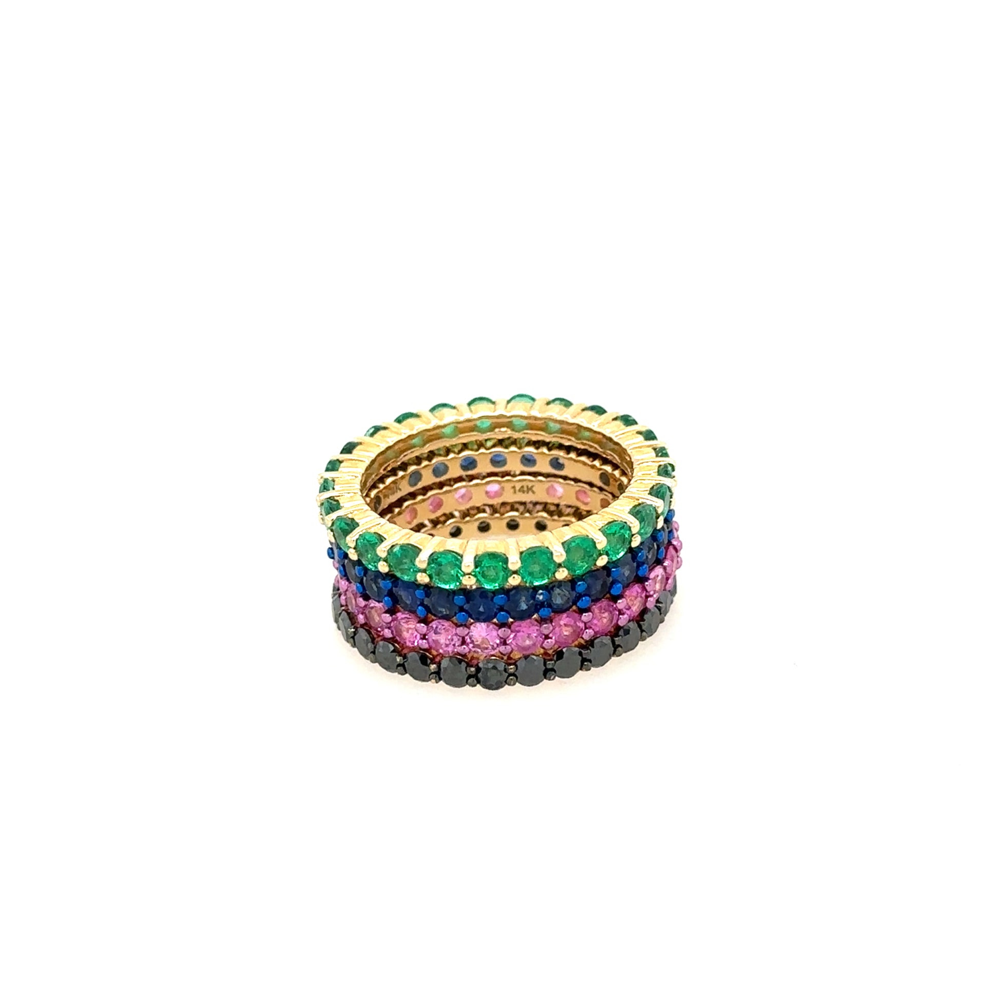 Introducing our Gemstone Eternity Band - the perfect mix of elegance and playfulness. Boasting Sapphires, Emeralds, and Black Diamonds in a 14k yellow gold design, these bands are bound to turn heads. Wear them stacked or solo - either way, you'll shine! Available in Emerald, Pink Sapphire’s , Blue Sapphire’s , and Black Diamonds.