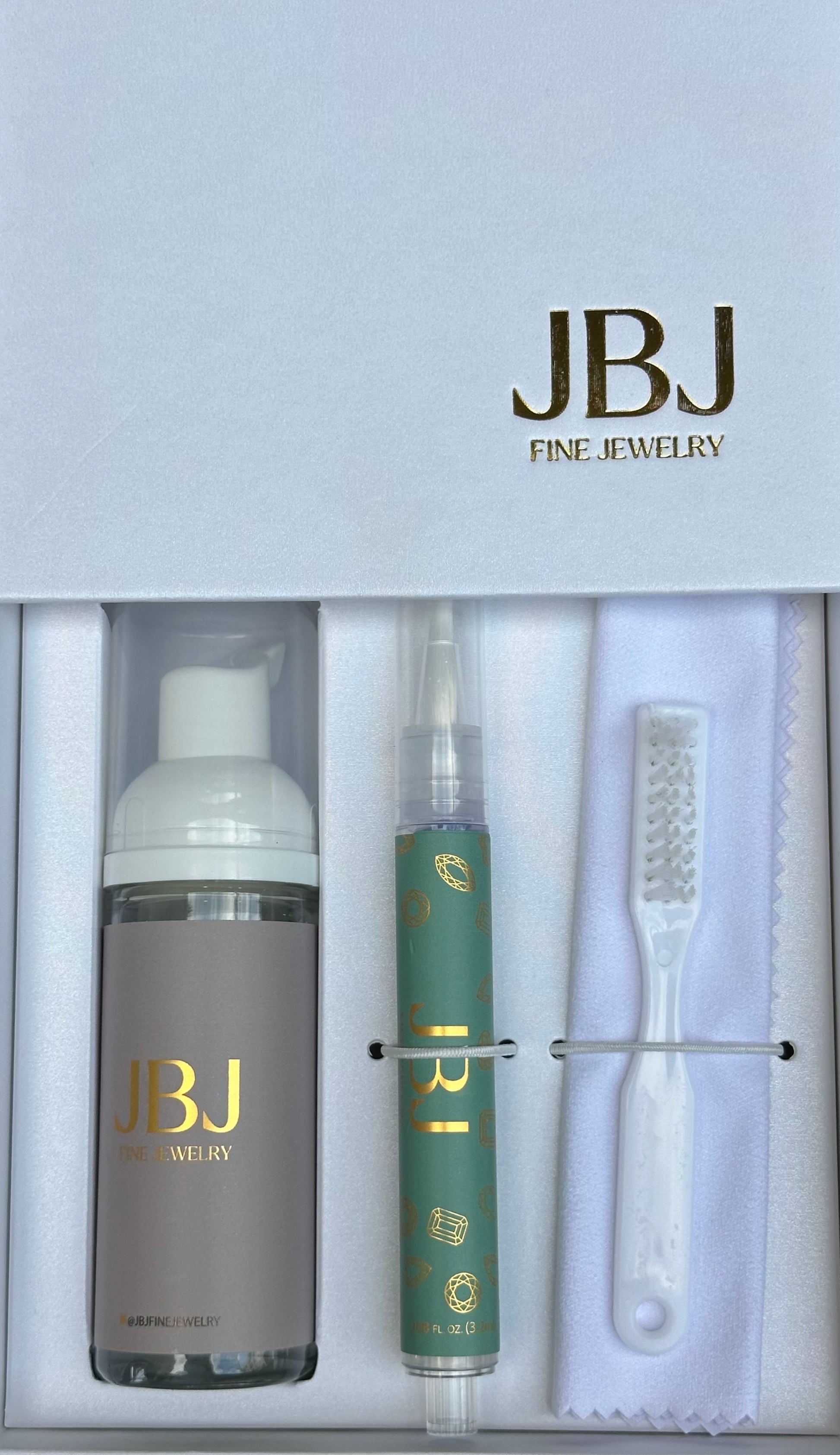 Wipe jewelry with a soft, damp cloth after wearing, and avoid paper towels. Let pieces dry before storing. Use JBJ foaming cleaner for diamonds, most metals, and delicate stones, or opt for professional cleaning for extra care.