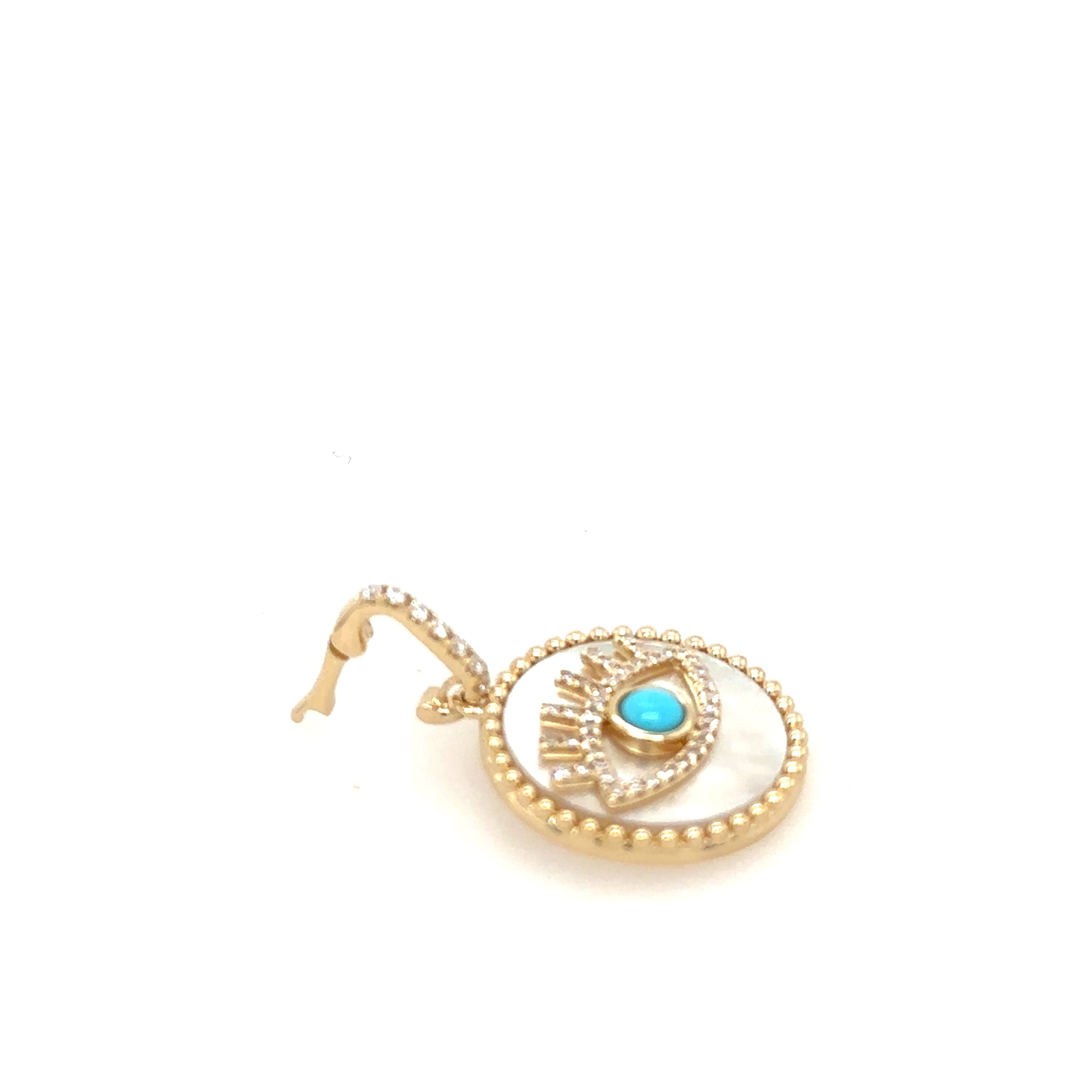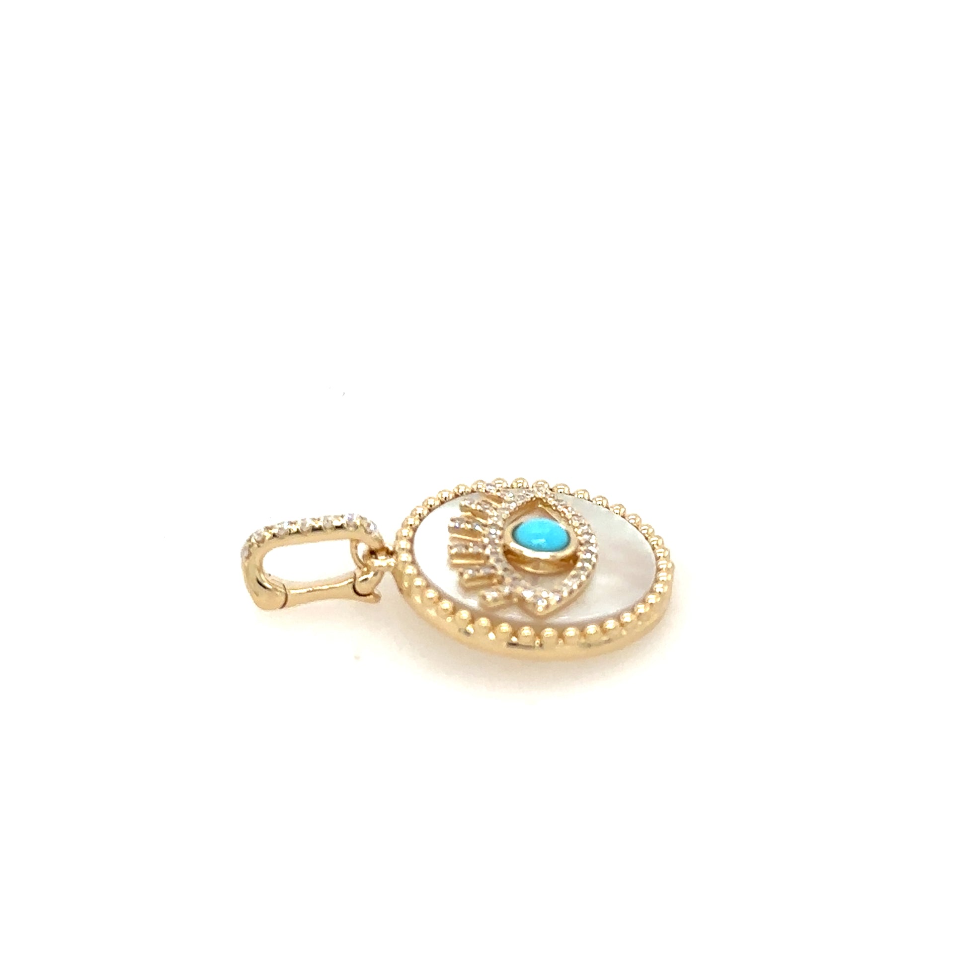 Mother of Pearl Turquoise & Diamond Evil Eye Pendant