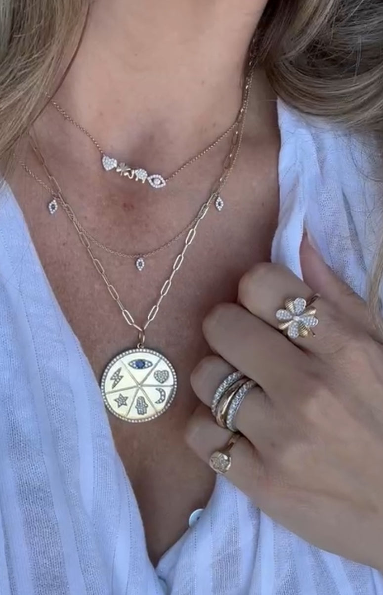 Featuring four, dainty symbols of luck and love, our Penny Necklace is sure to bring you an abundance of good fortune. Available in your choice of 14k yellow gold or sterling silver, this lucky necklace is enhanced with diamonds for a sparkling finish.