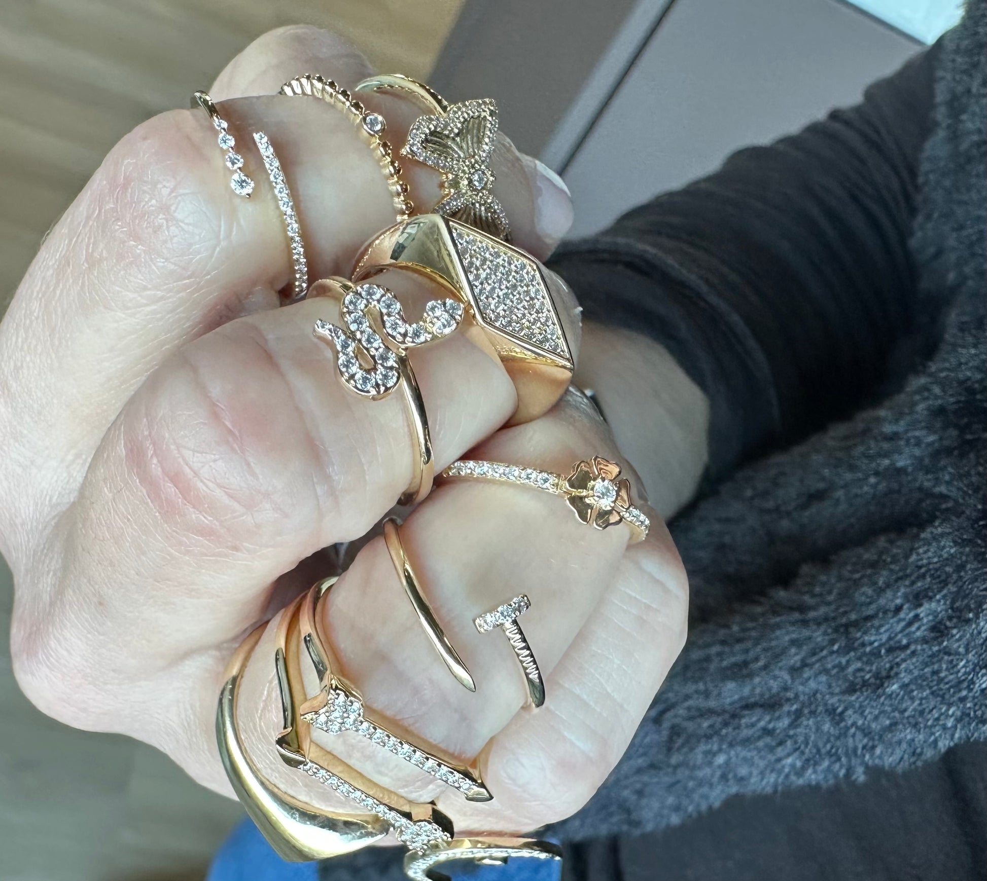 Wipe jewelry with a soft, damp cloth after wearing, and avoid paper towels. Let pieces dry before storing. Use JBJ foaming cleaner for diamonds, most metals, and delicate stones, or opt for professional cleaning for extra care.