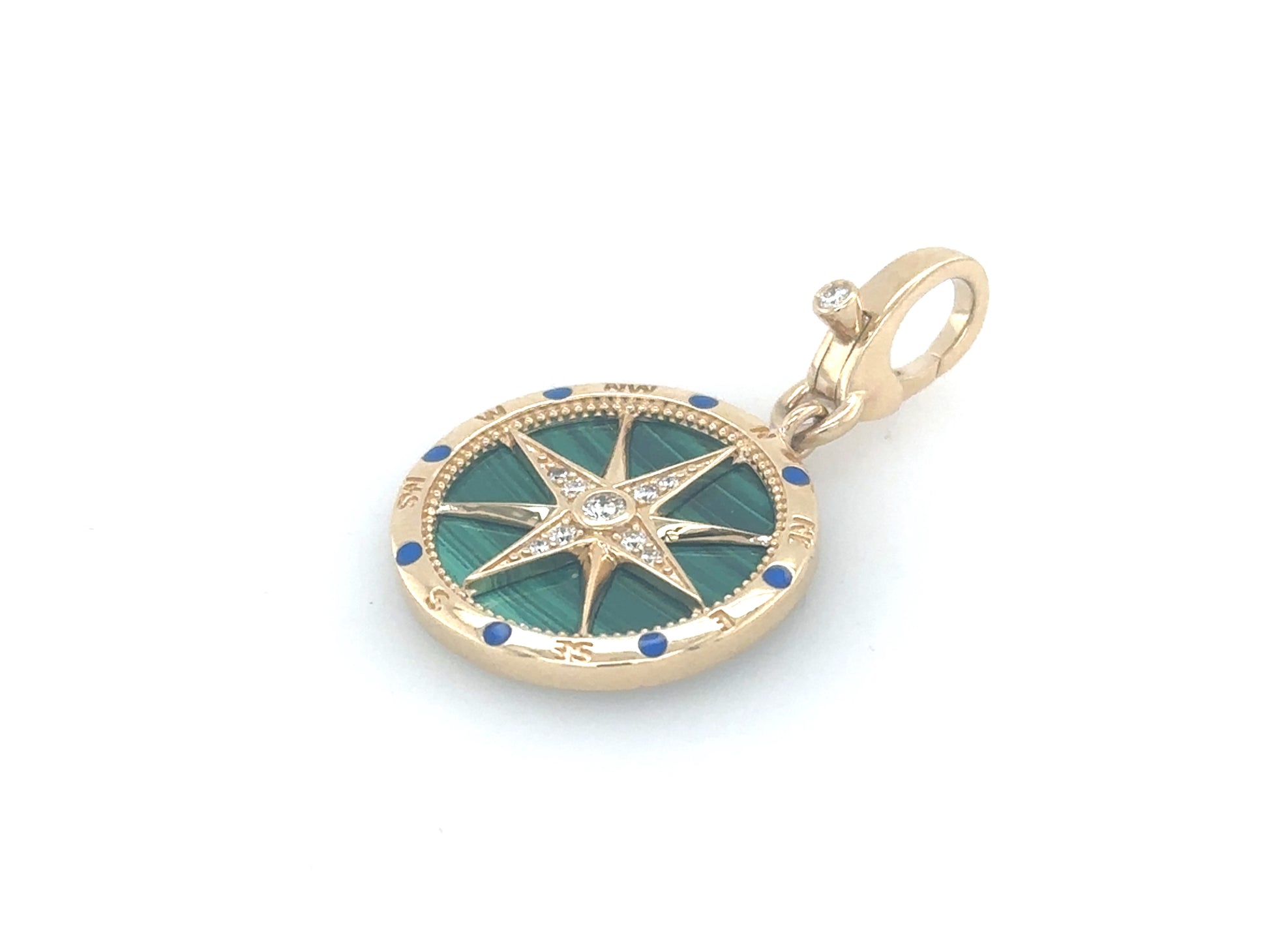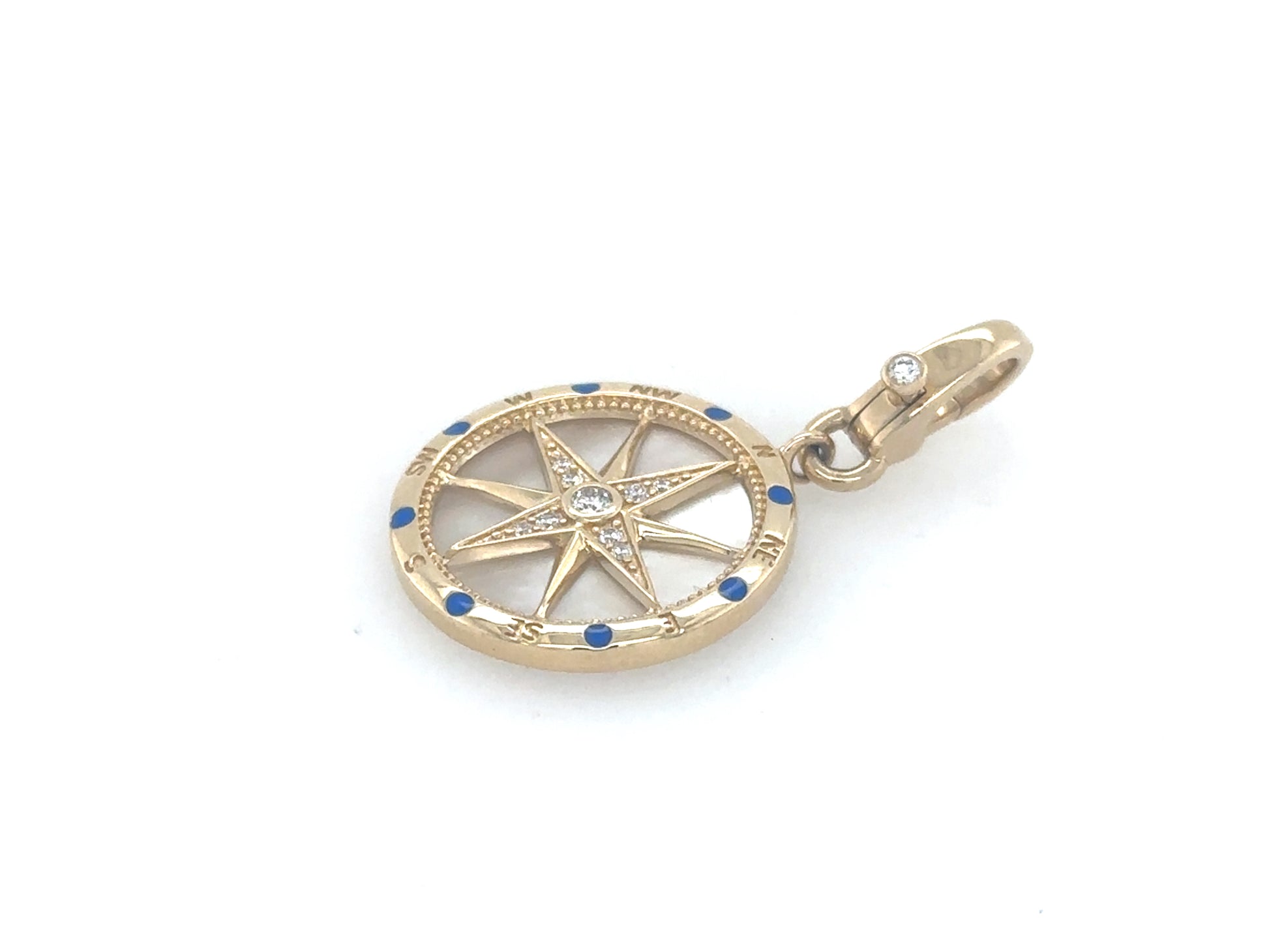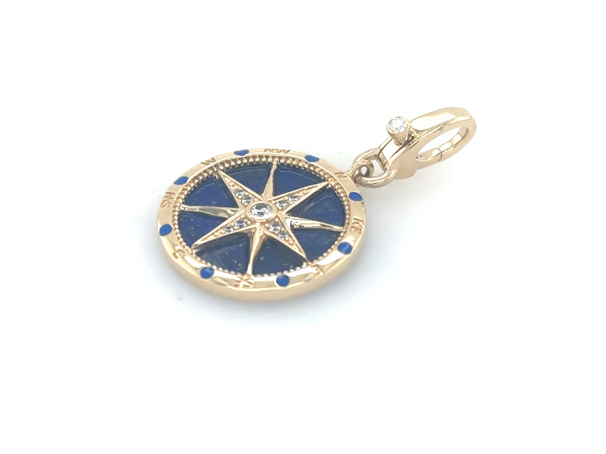 Our best selling compass pendant now available with a diamond clasp.  The compass represents bringing motivation to a person feeling lost. It gives a sense of hope and inspires you to follow your heart and intuition. Compasses always point North, a direction which symbolizes progress and inspiration. You will always find your way.