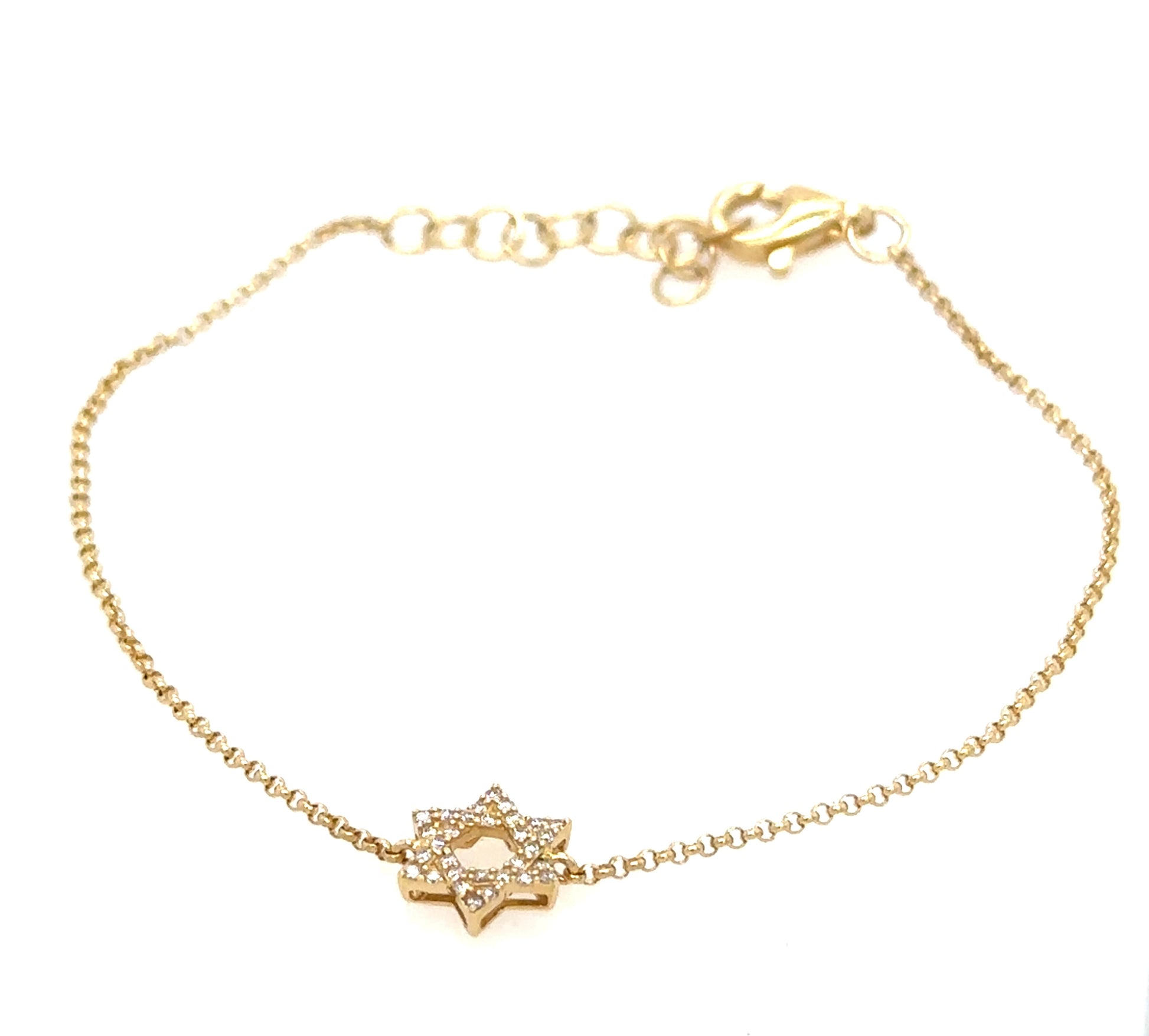 A beautiful diamond Star of David bracelet.  A symbol for Jewish identity and Judaism. Available in 14k yellow gold