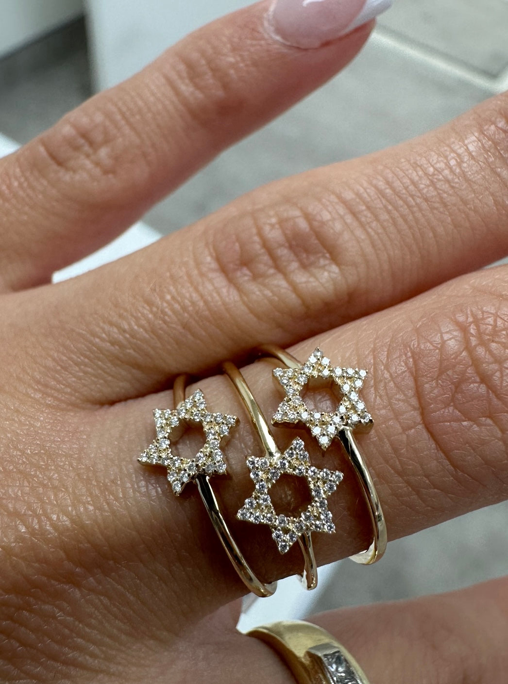 A beautiful diamond Star of David ring. A symbol for Jewish identity and Judaism. Available in 14k yellow.
