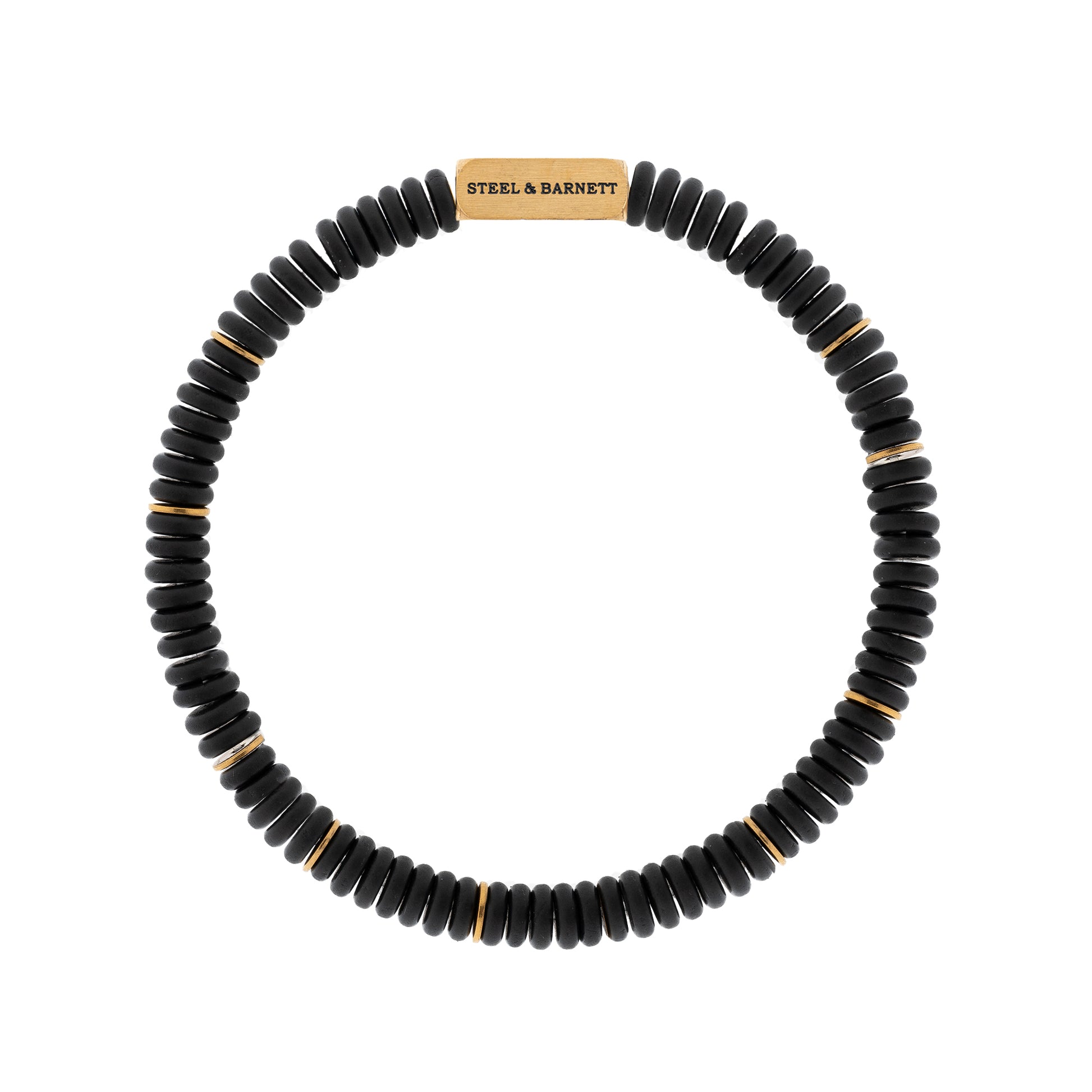 Meet Two Tone, a bold and stylish bracelet that breaks from traditional designs with its matte flat stones accented with gold or silver flecks. This versatile piece transitions effortlessly from simple elegance to a more sophisticated ensemble when paired with a leather bracelet. Perfect for any occasion, Two Tone offers a trendy, impactful update to your accessory collection.