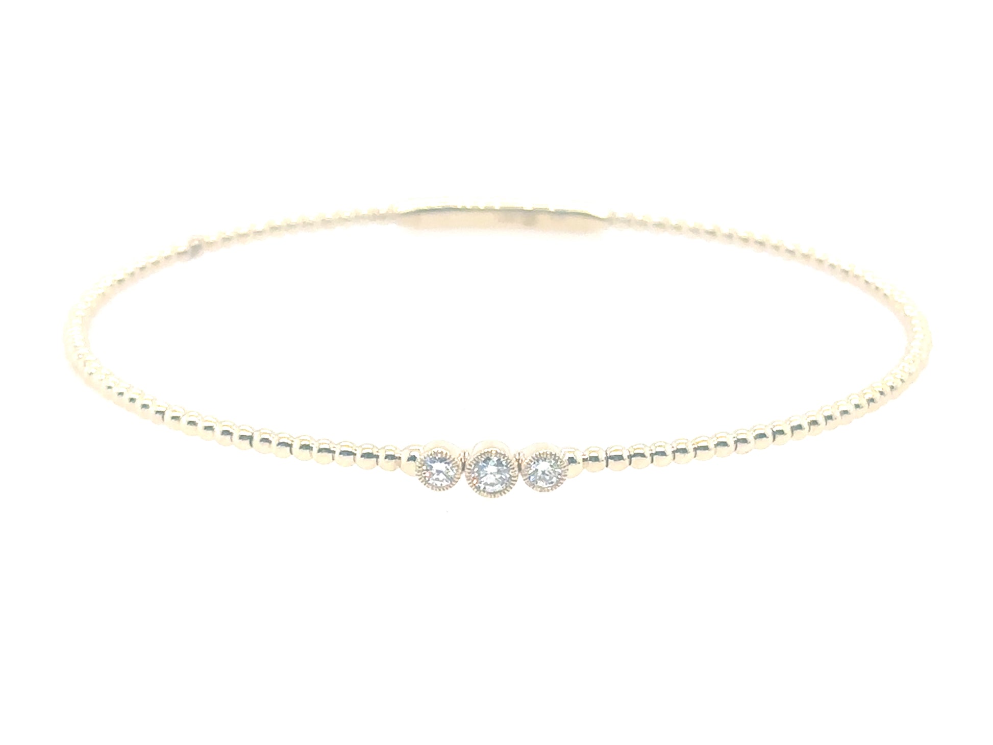 Add some charm to your stack with our Taylor Three Diamond Flexi Bracelet. Designed in 14k yellow gold, featuring three sparkling diamonds to give your outfit a touch of sparkle.