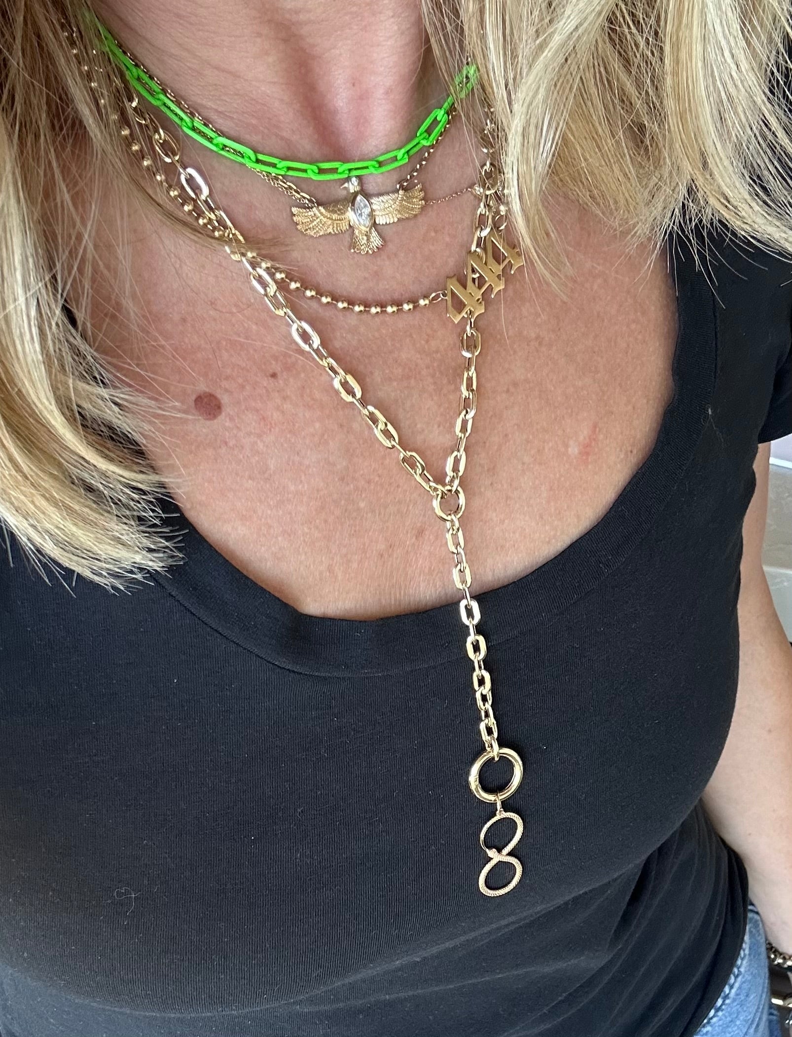 The Esme necklace creates a unique look with a beautiful Y drop.  The bottom features  a functional clasp where charms can added.